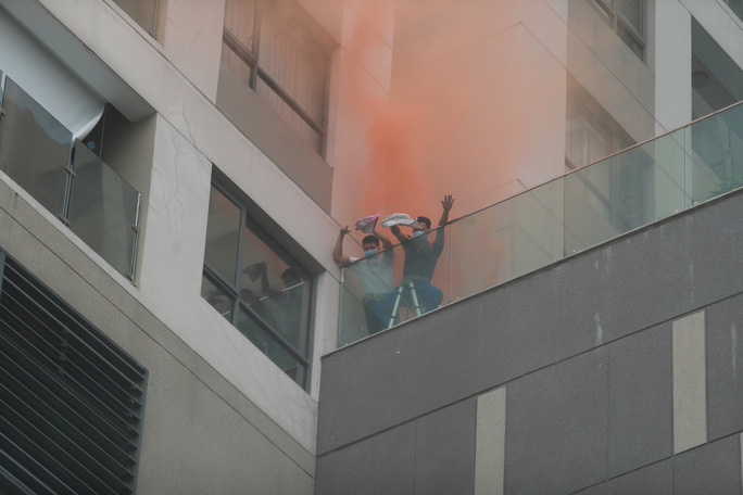 Khu vực cháy tỏa ra nhiều khói, khí độc, bức xạ nhiệt tăng cao đe dọa đến tính mạng, sức khỏe những người kẹt lại phía trong chung cư.