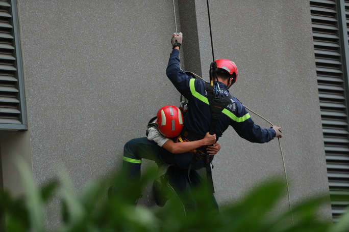 Lực lượng cứu nạn triển khai máng cáp trượt cứu người từ trên cao, đưa xuống đất. Từ tầng 11, người mắc kẹt được đưa xuống đất an toàn bằng dây hạ chậm. Khi những nạn nhân cuối cùng ra khỏi vùng nguy hiểm, cảnh sát PCCC huy động tổng lực dập tắt đám cháy.