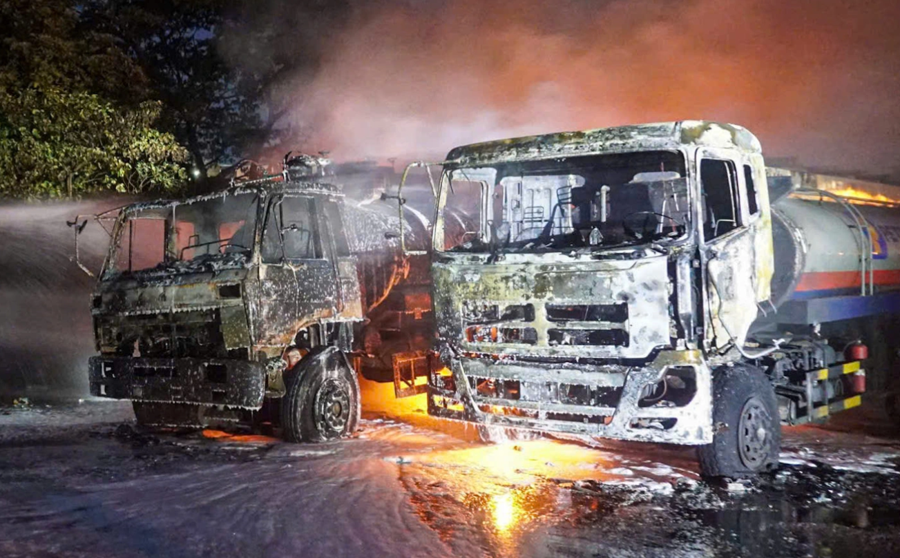 Đến khoảng 18h45 cùng ngày, ngọn lửa cơ bản được khống chế. Vụ cháy đã thiêu rụi phần đầu của 2 xe bồn.