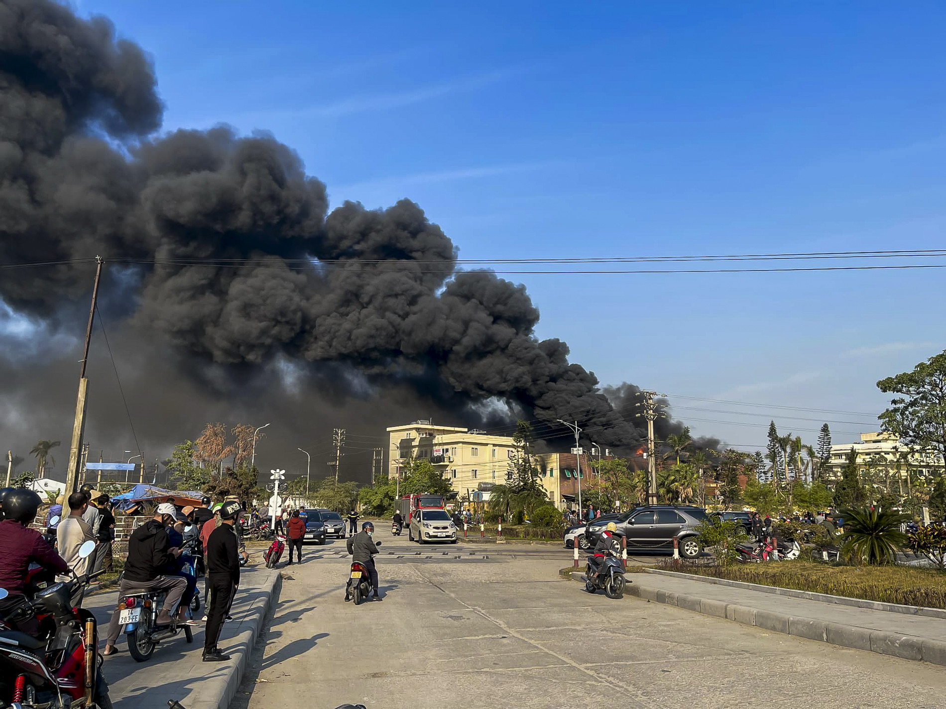 Theo nhân viên công ty, ngọn lửa bốc lên từ khu vực kho và xưởng sản xuất bật lửa. Chỉ trong thời gian ngắn, ngọn lửa đã bao trùm, cột khói cao hàng trăm mét.