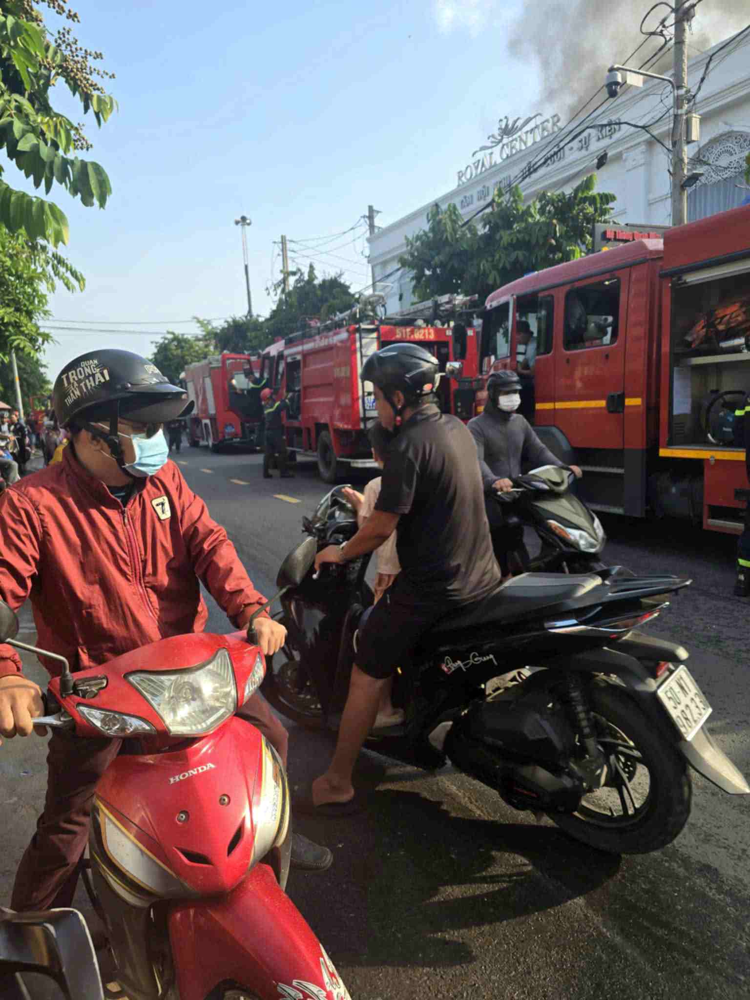 Đám cháy bùng phát tại một trung tâm tiệc cưới trên đường Song Hành, huyện Hóc Môn. Hơn 5 xe cứu hỏa cùng nhiều chiến sĩ đến hiện trường ứng cứu.