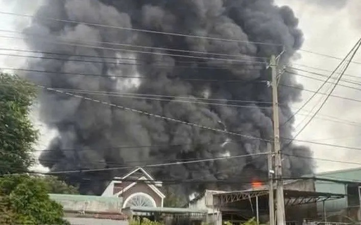 Do bên trong chứa nhiều hóa chất, dung môi dễ cháy nên ngọn lửa nhanh chóng lan rộng, phát ra hàng loạt tiếng nổ lớn, khói đen bốc cao hàng chục mét.