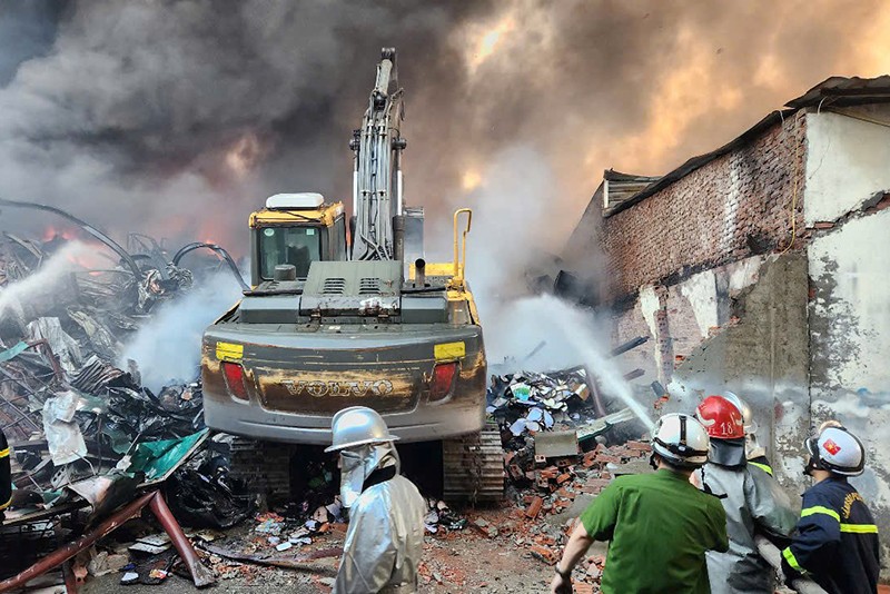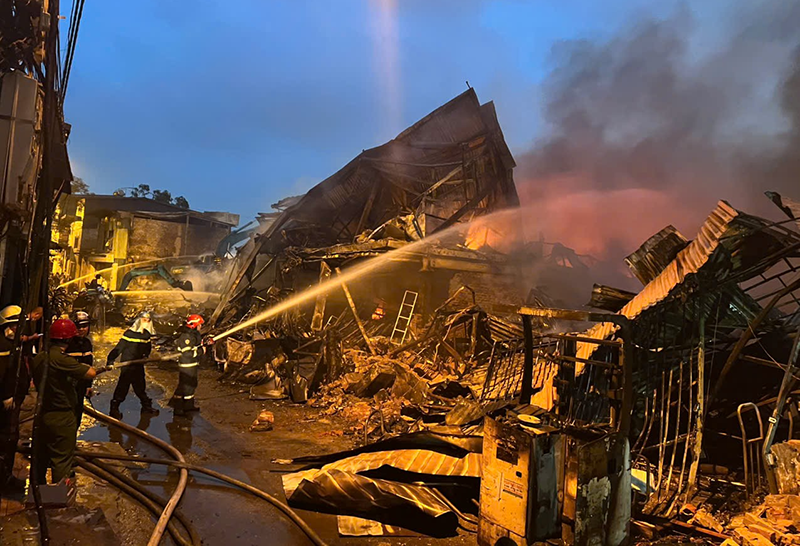 Tại hiện trường, lực lượng chức năng xác định đám cháy diễn biến phức tạp, có nhiều vật liệu dễ bắt cháy, phát sinh nhiều khói khí độc, vận tốc cháy lan nhanh và có khả năng cháy lan sang các khu vực nhà kho lân cận gây khó khăn cho việc tiếp cận chữa cháy.